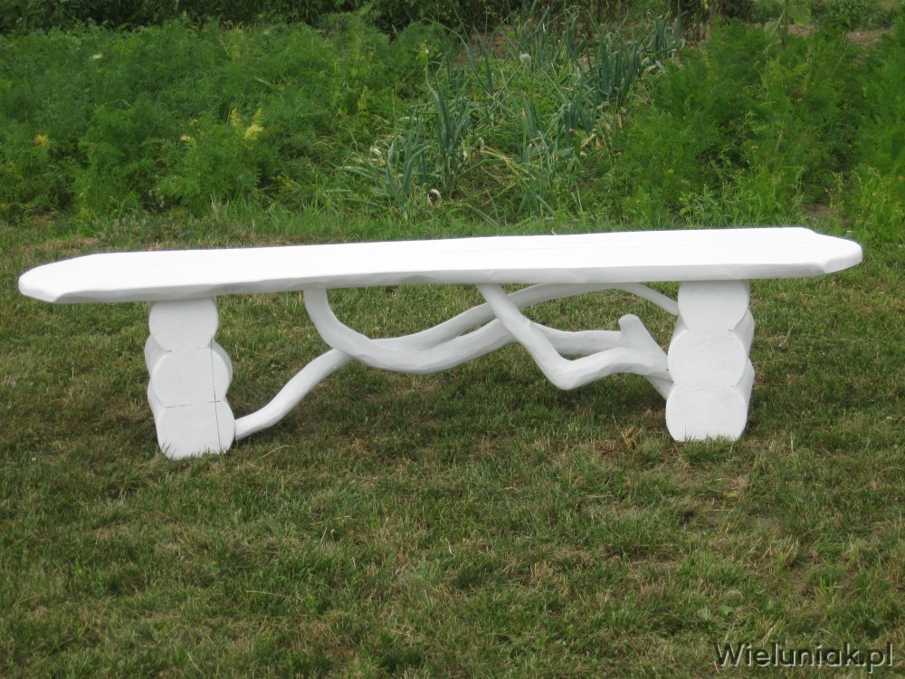 Ławka ogrodowa wykonana jest z bali oraz desek brzozowych. Z kolei siedzisko ławki wykonujemy z desek brzozowych gr. 38 mm. Ławki są dwukrotnie impregnowane Drewnochronem w wybranym przez klienta kolorze. Istnieje możliwość wykonania zdobień na ławkach.