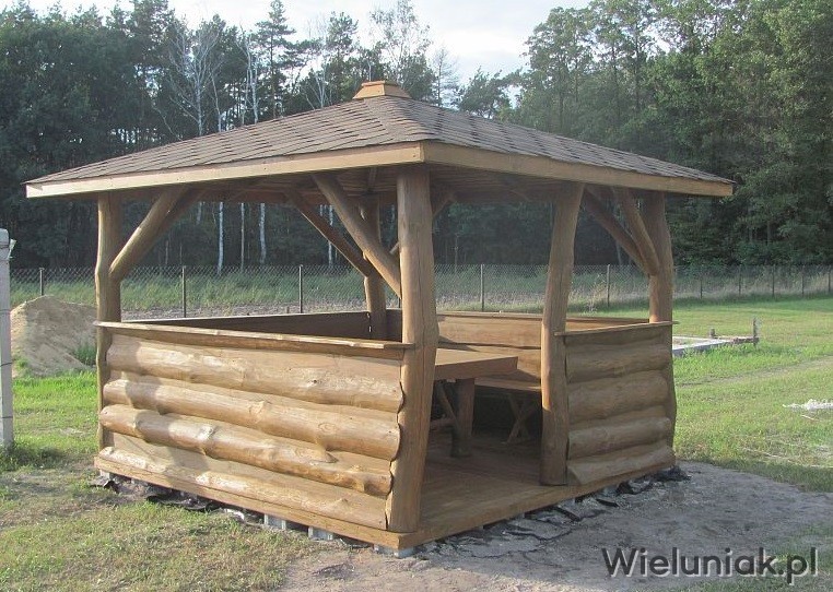 1.Słupy altany wykonane z bali z możliwą naturalną krzywizną o średnicy ok. 16 cm.