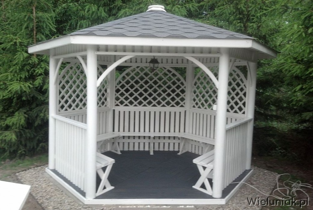 - 5 ławek mocowanych do altany,
