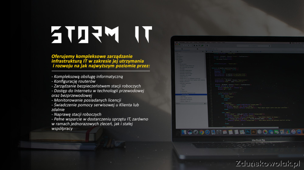 Storm IT to firma informatyczna, która specjalizuje się w oferowaniu usług IT dla małych firm oraz osób prywatnych. Dzięki wieloletniemu doświadczeniu oraz wiedzy branżowej, jesteśmy w stanie zapewnić kompleksowe wsparcie w dziedzinie informatyki.