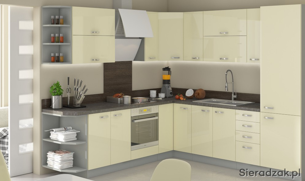 ZESTAW- Kuchnia Karmen(kremowy polysk)-narożna 260/270cm z BLATEM 38mm. - 3995 zlotych.