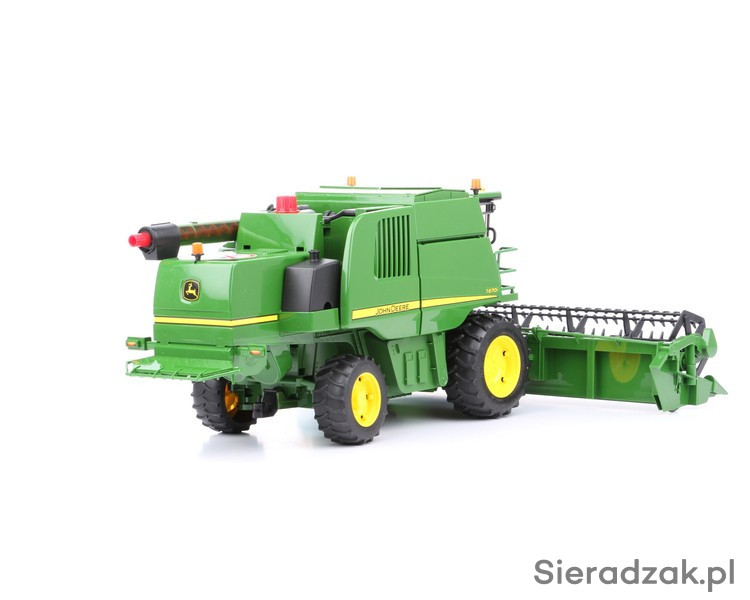 Pięknie wykonany, zaskakujący różnorodnością funkcji i liczbą ruchomych elementów kombajn John Deere to spełnienie marzeń każdego małego chłopca. Prezentowany model pojazdu rolniczego Bruder wyposażony został w sterowaną pokrętłem skrętną oś tylną, w duże, profesjonalnie odwzorowane koła z miękkim gumowym bieżnikiem, w przeszkloną kabinę kierowcy z otwieranymi drzwiami, w otwierane klapy umieszczone po bokach i na górze kombajnu, a także w odczepiany hader z wózkiem. Zabawkowy kombajn John Deere posiada również wysuwaną na bok rurę wysypową połączoną z systemem transmisyjnym, co pozwala na przenoszenie materiału sypkiego ze zbiornika kombajnu na przyczepę lub w inne miejsce zrzutu. Jak na najlepsze zabawki Bruder przystało, model pojazdu posiada aktywne, ruchome zawieszenie, co wpływa na zwiększenie realizmu zabawy i na atrakcyjność samej zabawki.