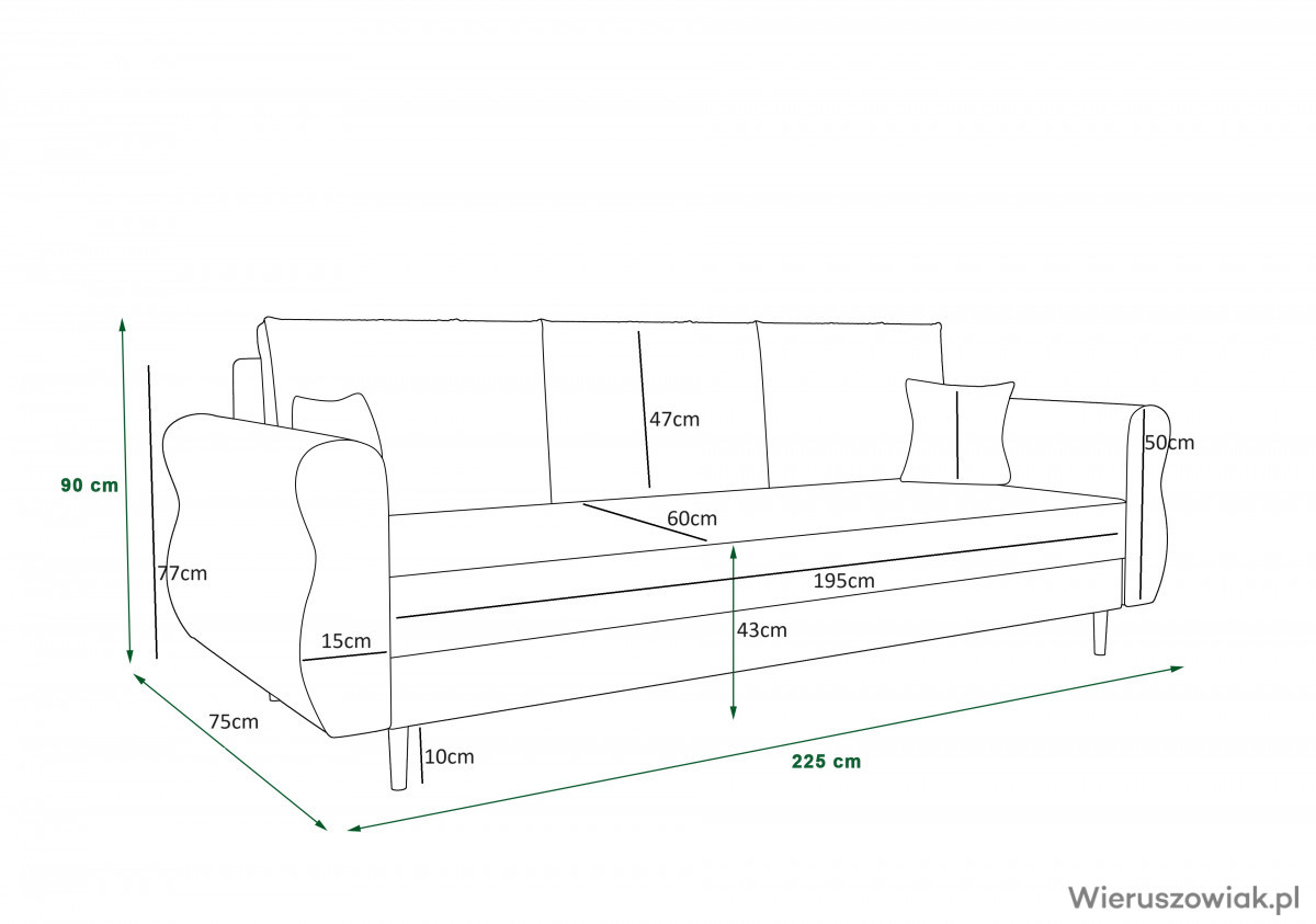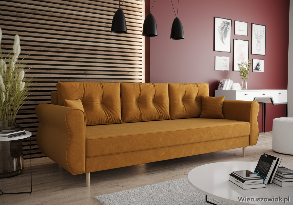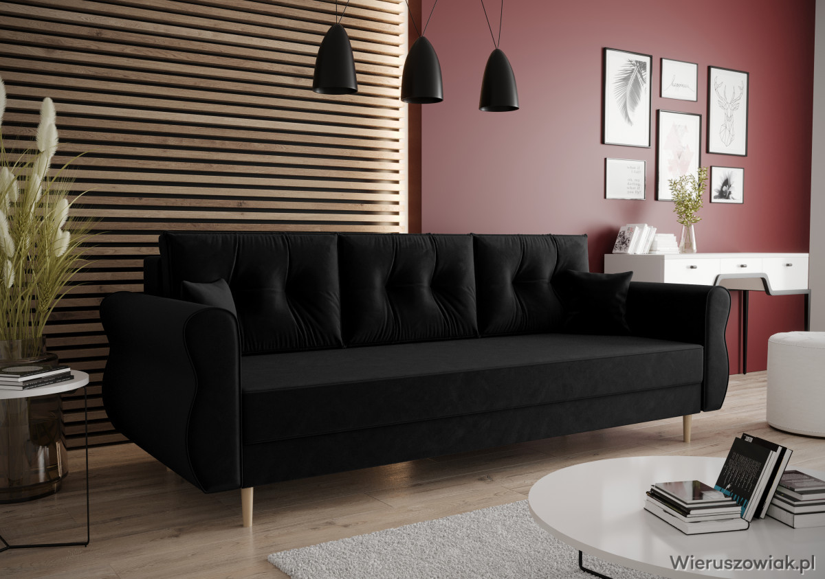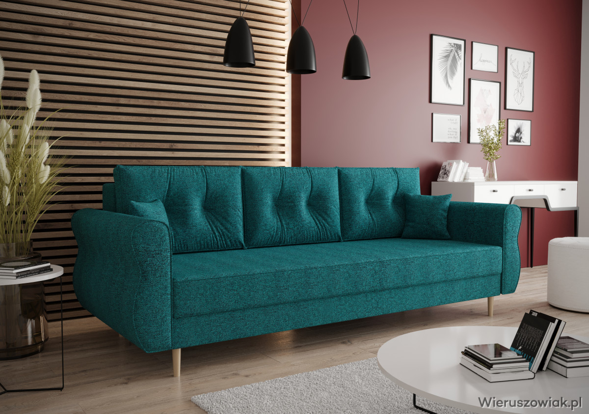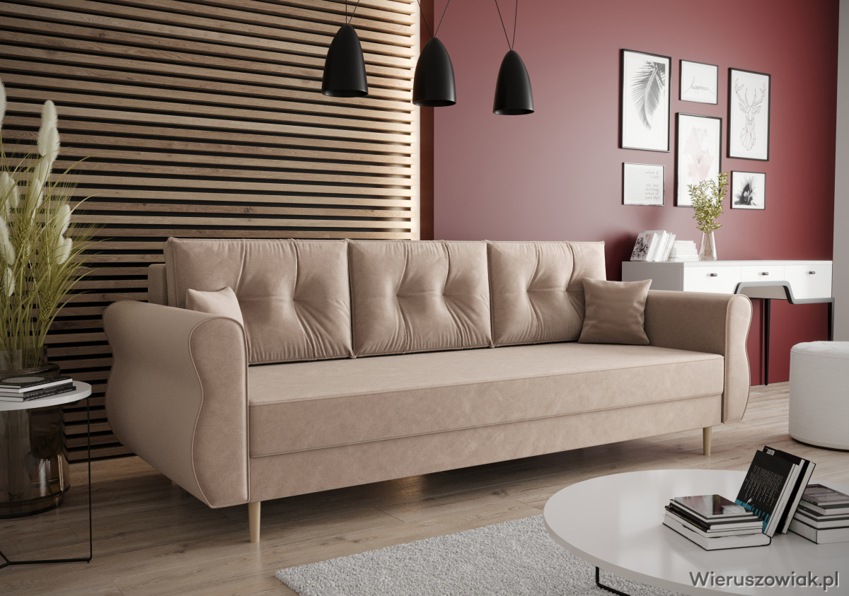 Sofa Apollo to elegancki i praktyczny mebel, który doskonale wpasuje się w różnorodne wnętrza. Wyposażona w funkcję spania, szybko przekształca się w wygodne łóżko, co czyni ją idealnym rozwiązaniem dla gości, zapewniając komfortowy sen.