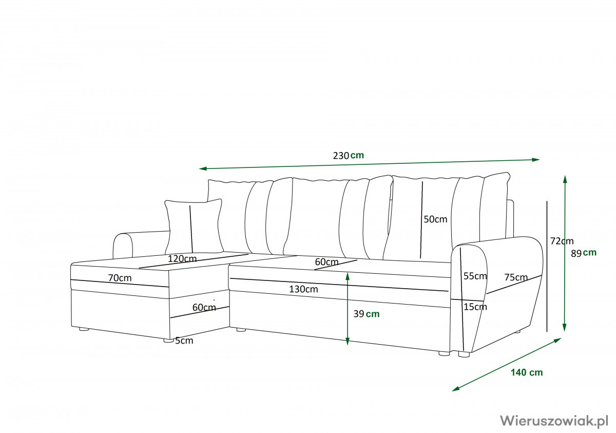 Narożnik Davos w kształcie litery L to idealne połączenie elegancji i funkcjonalności, które doskonale sprawdzi się w każdym wnętrzu. Wyposażony w pojemnik na pościel, zapewnia dodatkowe miejsce do przechowywania, co jest niezwykle przydatne w mniejszych przestrzeniach.