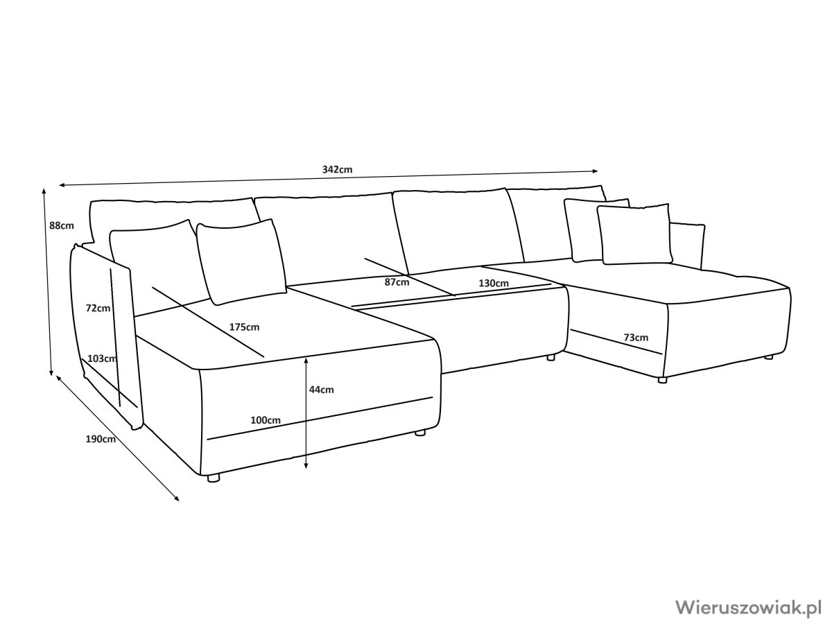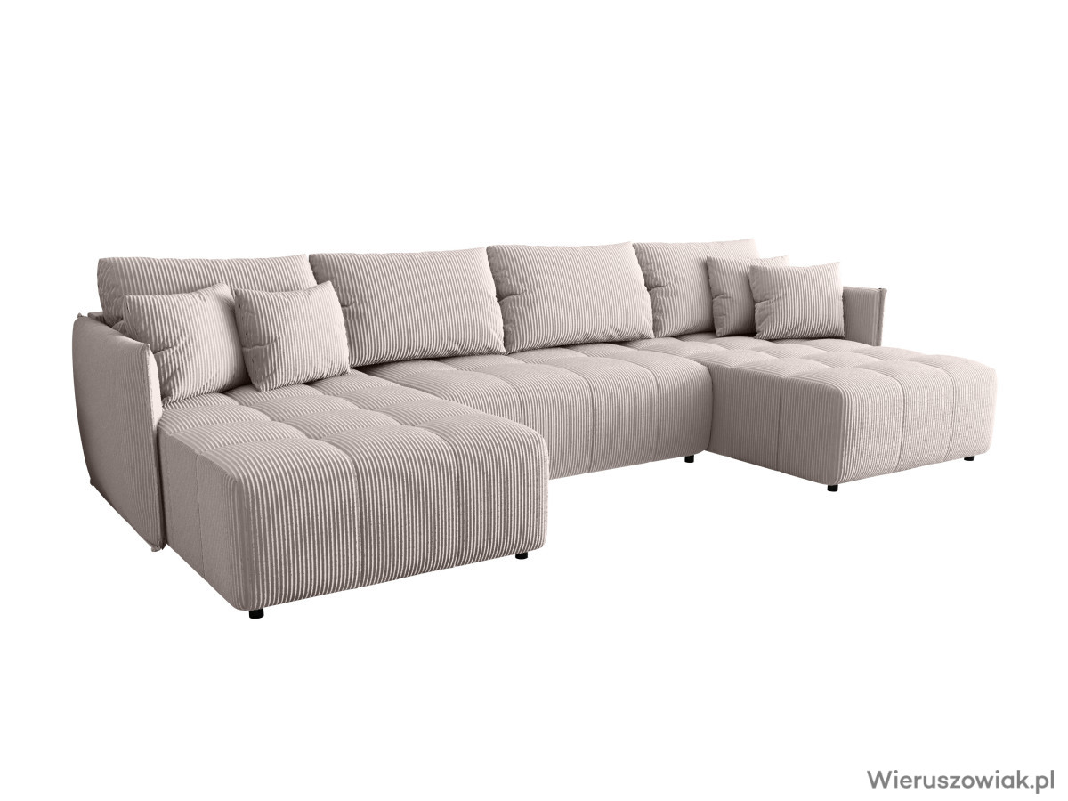 Narożnik Onil w kształcie litery U to nowoczesne połączenie funkcjonalności i eleganckiego designu, który doskonale wpasuje się w każde współczesne wnętrze. Wyposażony w funkcję spania, zapewnia wygodny odpoczynek zarówno w dzień, jak i w nocy, przekształcając się w przestronną powierzchnię do spania. Dodatkowo narożnik Onil posiada praktyczny pojemnik na pościel, który pomoże utrzymać porządek i zaoszczędzi miejsce w Twoim salonie.