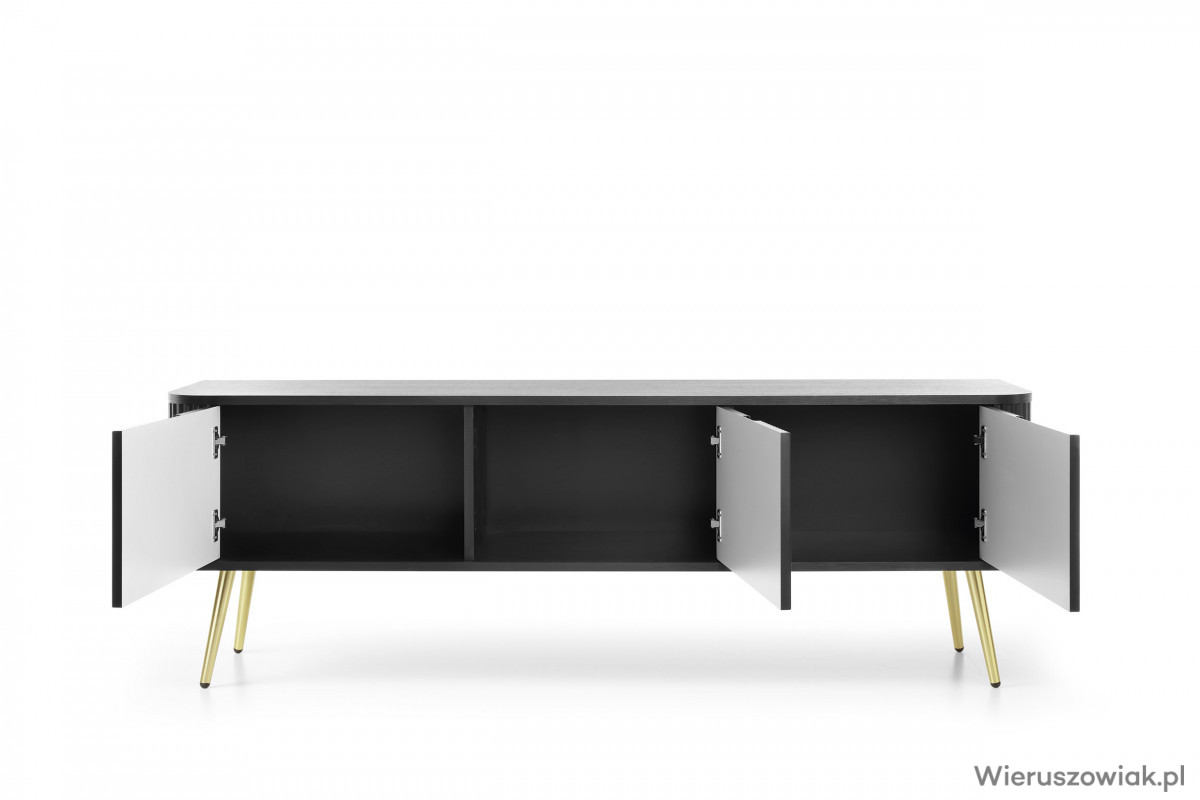 Frezy w uchwytach frontowych zapewniają wygodny dostęp do wnętrza szafki, a jednocześnie stanowią elegancki detal, podkreślający nowoczesny styl. Szafka RTV Elara oferuje przestronność i funkcjonalność, idealnie mieszcząc sprzęt audio-wideo oraz inne akcesoria. Dzięki różnorodności kolorów i wykończeń, szafka Elara z pewnością wpisze się w każde wnętrze, stając się jego ozdobą i sercem domowej strefy rozrywki.