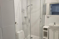 Łazienka: kabina prysznicowa, WC, pralka, umywalka z szafką