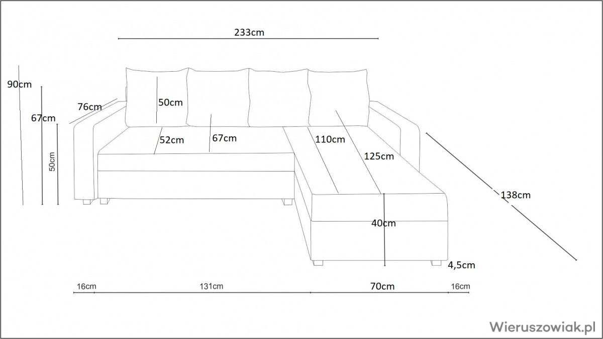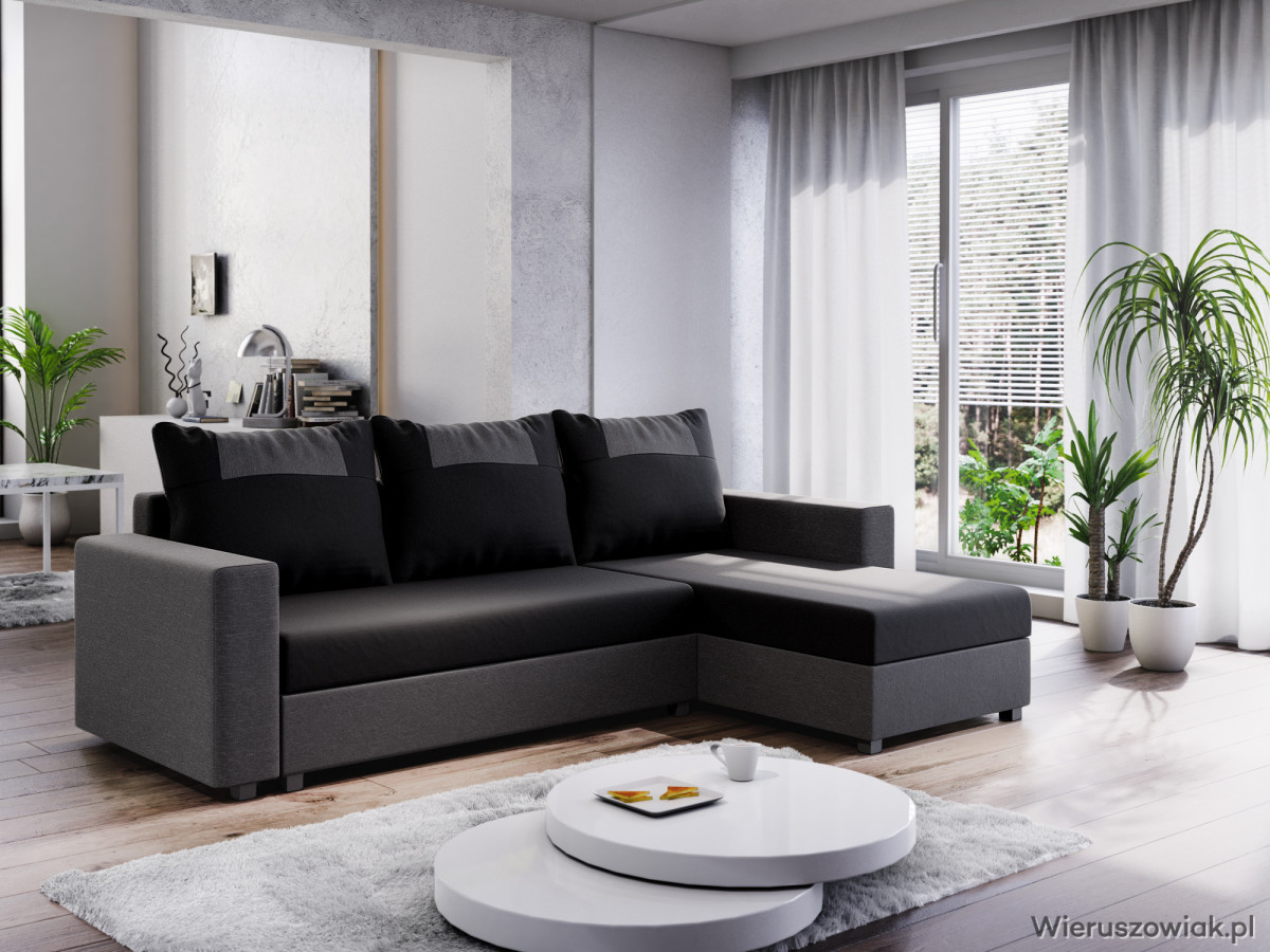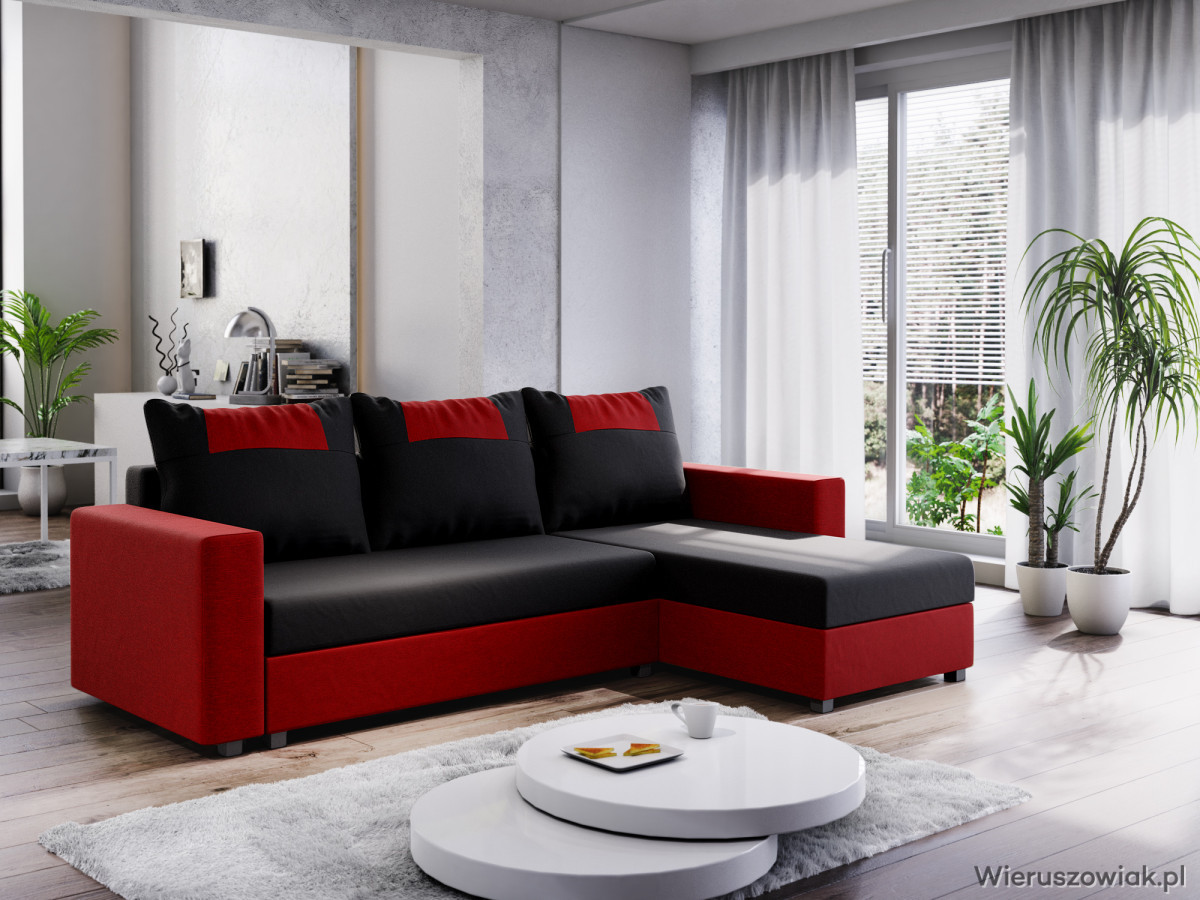 Narożnik dostępny jest w różnych kolorach i tkaninach, co pozwala na dopasowanie go do indywidualnych potrzeb i stylu wnętrza. Solidna konstrukcja oraz wysokiej jakości materiały gwarantują długotrwałe użytkowanie.