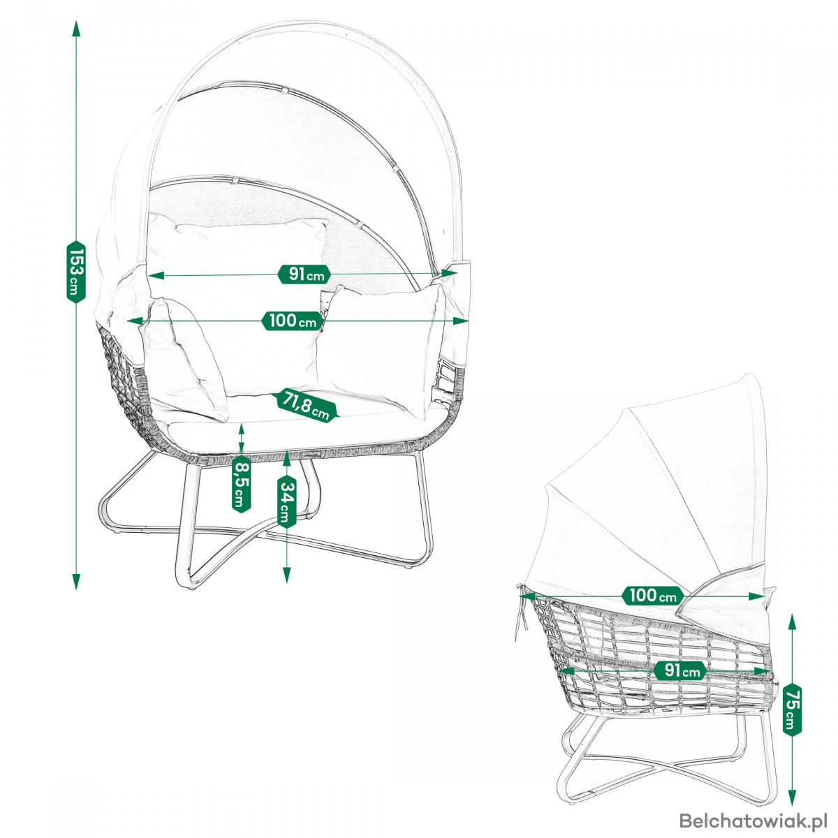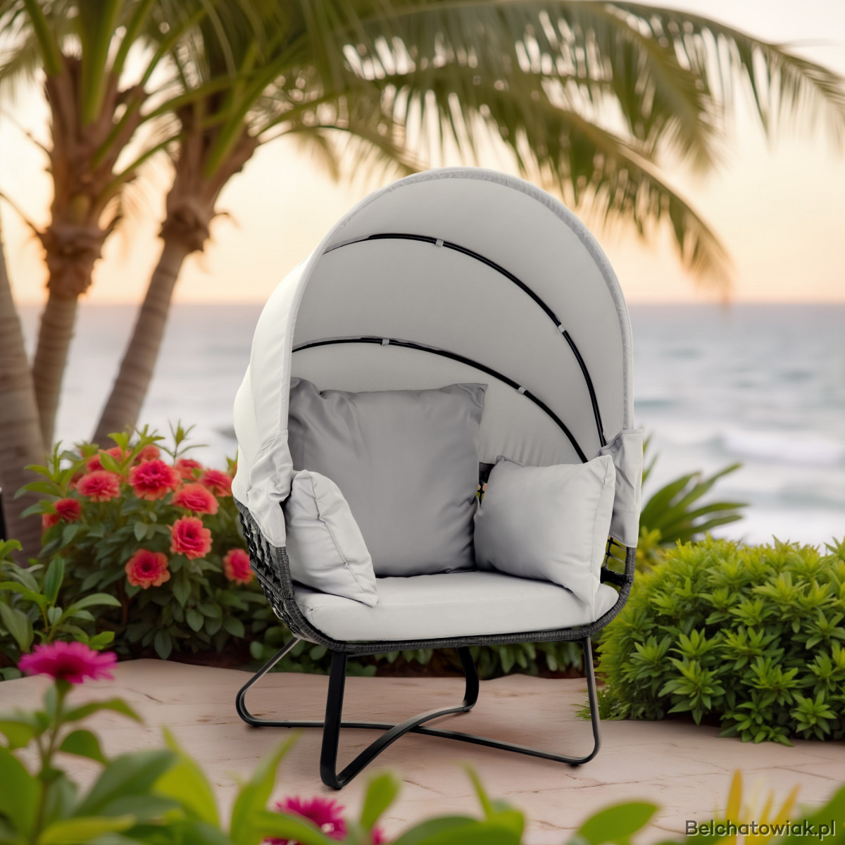 Szukasz prawdziwego miejsca do wypoczynku i ucieczki od codziennego zgiełku? Ten fotel typu kokon z daszkiem to prawdziwa oaza relaksu, gdzie możesz schować się przed słońcem, zatopić w lekturze lub po prostu delektować się chwilą ciszy.