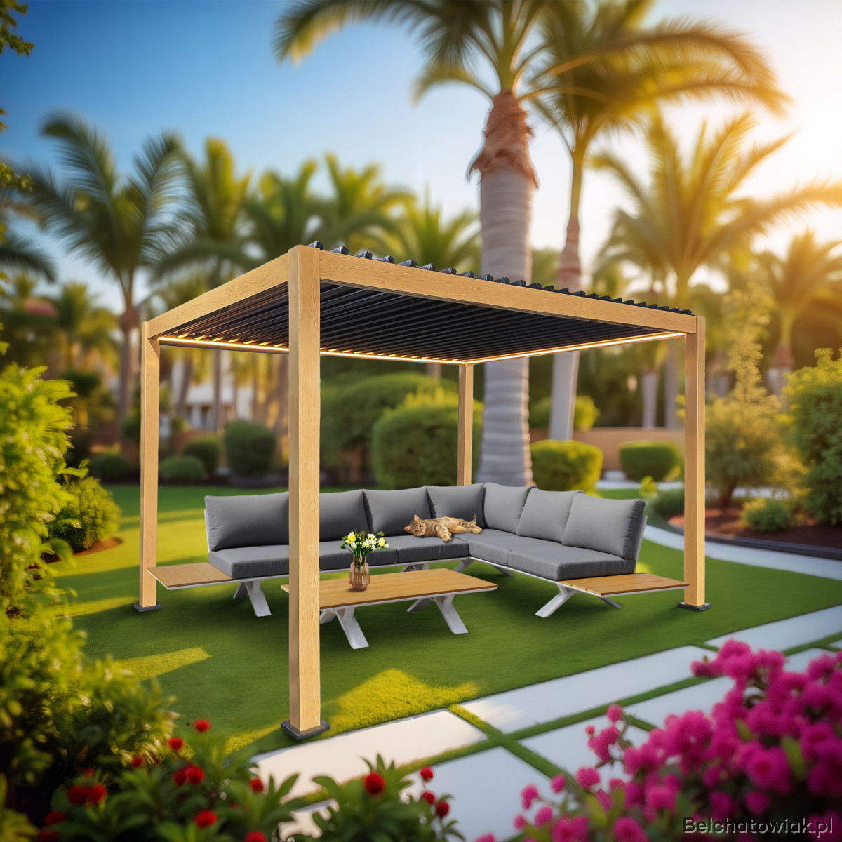 Pergola ogrodowa 3x4 m z oświetleniem LED i elektrycznymi kurtynami