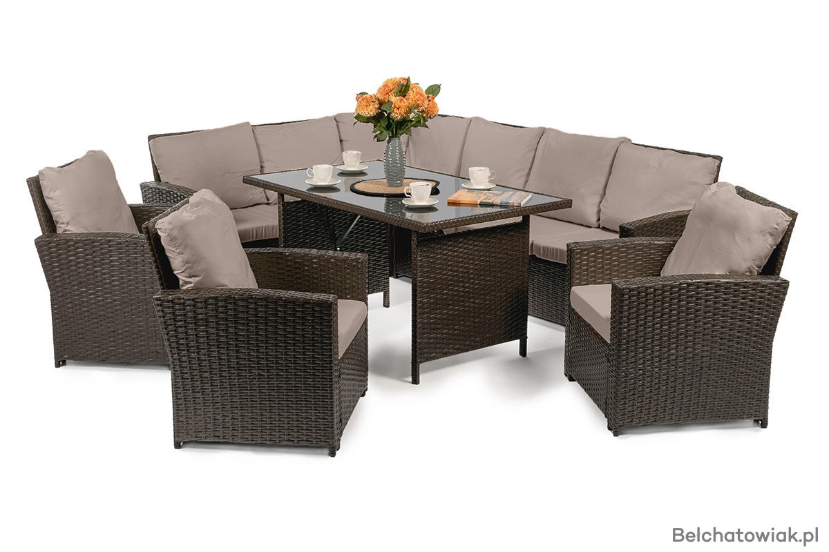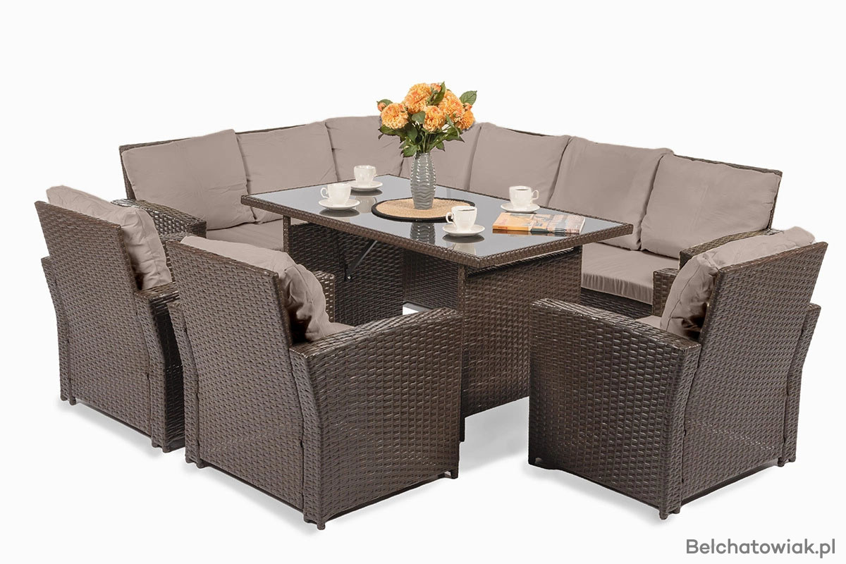 Nowoczesny Zestaw Mebli Ogrodowych TORINO z Technorattanu – 10-osobowy Brązowy Narożnik