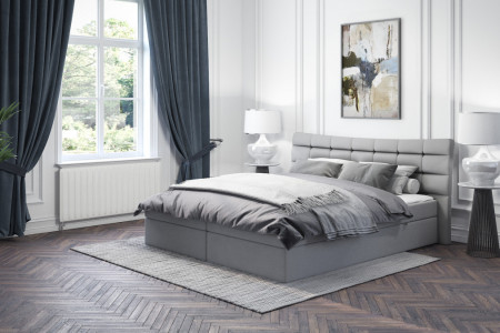 Łóżko VIVA to połączenie elegancji i praktycznych rozwiązań. Jego charakterystycznym elementem jest głęboko pikowany zagłówek w formie ozdobnej kratki, który nadaje wnętrzu niepowtarzalnego uroku i wyjątkowego charakteru.