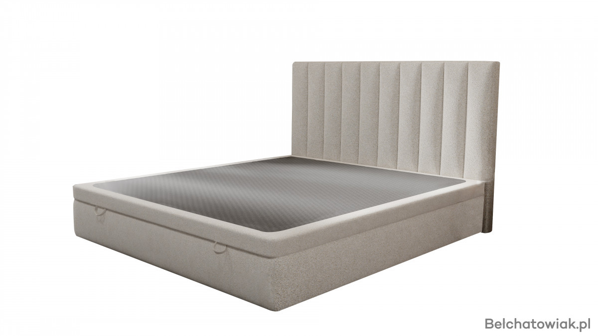 Łóżko tapicerowane z pojemnikiem na pościel – otwierane od przodu, zapewnia łatwy dostęp i porządek w sypialni