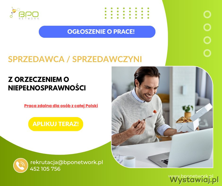 Sprzedawca (praca zdalna) z orzeczeniem o niepełnosprawności