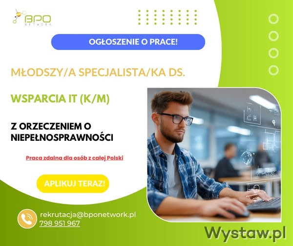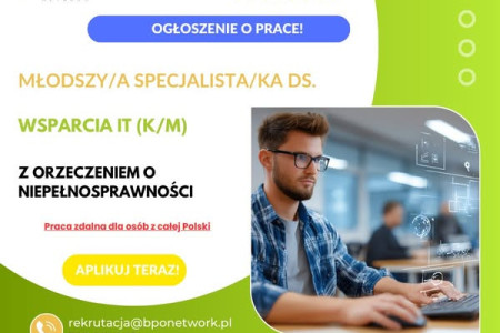 Młodszy/a Specjalista/ka ds. Wsparcia IT (K/M) z orzeczeniem o niepełnosprawności