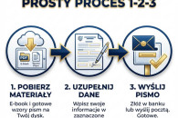 Otrzymujesz praktyczną instrukcję działania oraz pisma, które wystarczy uzupełnić swoimi danymi i wysłać — bez zgadywania, od czego zacząć.