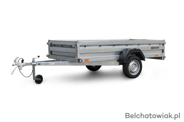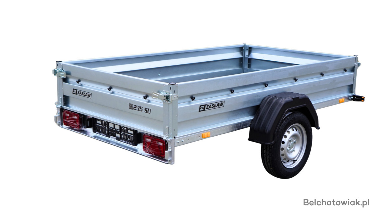 Przyczepy towarowe Zasław to nowoczesna linia przyczep samochodowych wykonanych z najlepszych dostępnych na polskim rynku materiałów. Produkty tej kategorii charakteryzuje m.in.: nowoczesny design burt walcowanych na zimno, wytrzymałe zaczepy burtowe z kompensacją oraz dyszel prowadzony od osi dla większej wytrzymałości konstrukcji. Wszystkie elementy ram cynkowane są ogniowo, co gwarantuje ich trwałość i dużą odporność na korozję. Model 265SU posiada dodatkowo: oś o DMC 750kg, uchylną skrzynię i otwieraną przednią burtę oraz system szybkiego demontażu burt. Wyposażony jest także w: koło podporowe z obejmą oraz uchwyty mocujące towar jak również ramkę tablicy rejestracyjnej.