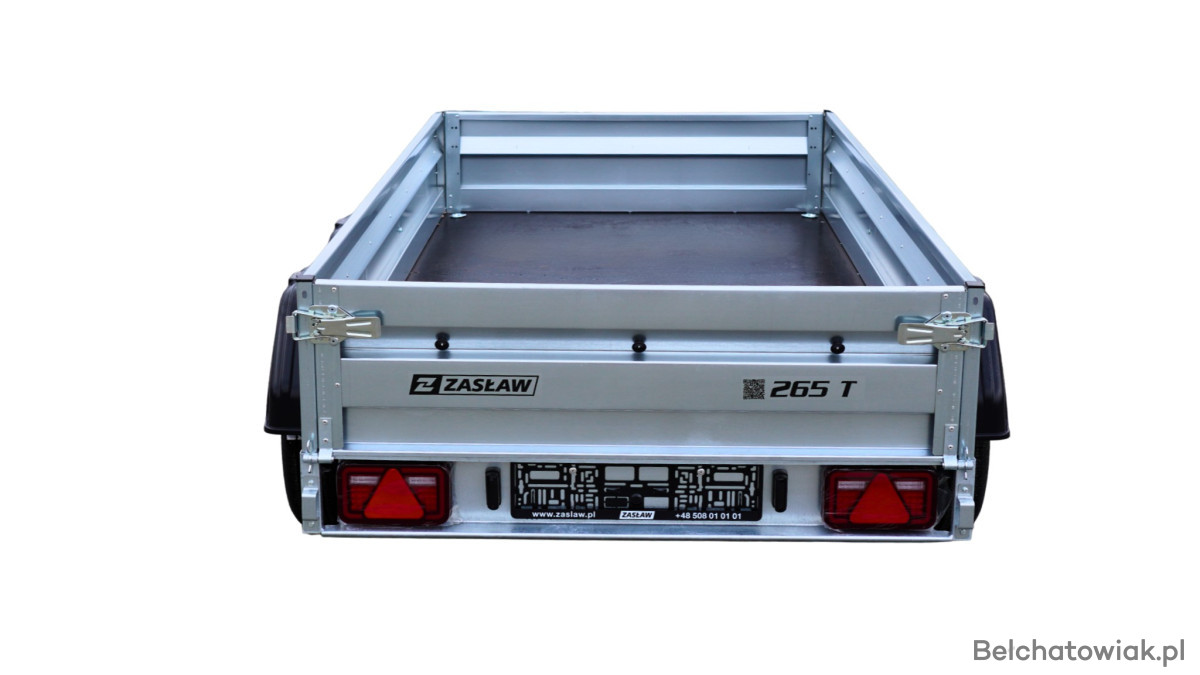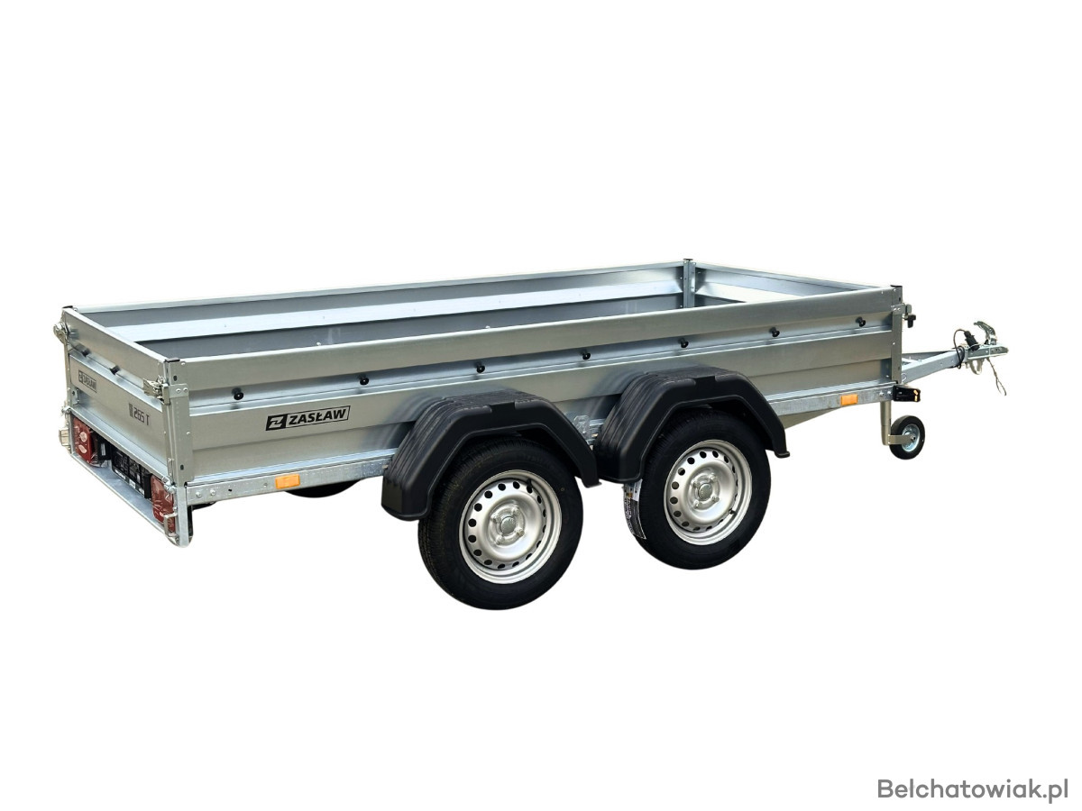 Przyczepy towarowe Zasław to nowoczesna linia przyczep samochodowych wykonanych z najlepszych dostępnych na polskim rynku materiałów. Produkty tej kategorii charakteryzuje m.in.: nowoczesny design burt walcowanych na zimno, wytrzymałe zaczepy burtowe z kompensacją oraz dyszel prowadzony od osi (o DMC 750kg) dla większej wytrzymałości konstrukcji, do produkcji tandemu zastosowano dwie osie po 750 kg. Przyczepy towarowe Zasław w standardzie wyposażono w instalację elektryczną. Wszystkie elementy ram cynkowane są ogniowo, co gwarantuje ich trwałość i dużą odporność na korozję. Model 265T posiada dodatkowo otwieraną przednią burtę oraz system szybkiego demontażu burt. Wyposażony jest także w: koło podporowe z obejmą, rolki mocujące plandekę oraz uchwyty mocujące towar i ramkę tablicy rejestracyjnej.