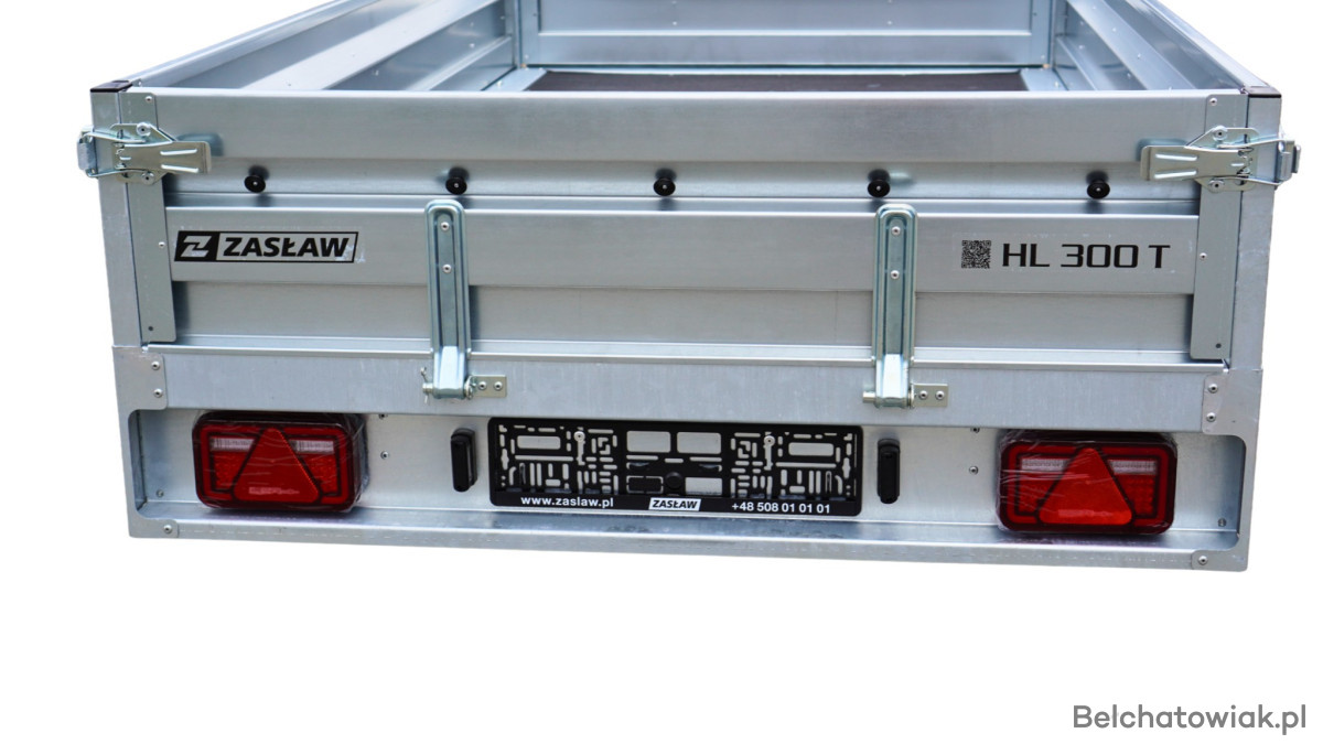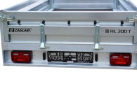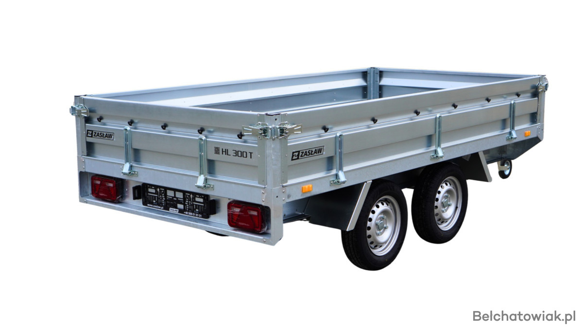 Przyczepy towarowe Zasław to nowoczesna linia przyczep samochodowych wykonanych z najlepszych dostępnych na polskim rynku materiałów. Produkty tej kategorii charakteryzuje m.in.: nowoczesny design burt walcowanych na zimno, wytrzymałe zaczepy burtowe z kompensacją oraz dyszel prowadzony od osi (o DMC 750kg) dla większej wytrzymałości konstrukcji. Przyczepy towarowe Zasław w standardzie wyposażono w instalację elektryczną. Wszystkie elementy ram cynkowane są ogniowo, co gwarantuje ich trwałość i dużą odporność na korozję. Model HL300T posiada dodatkowo otwieraną przednią burtę oraz system szybkiego demontażu burt. Wyposażony jest także w: koło podporowe z obejmą, rolki mocujące plandekę oraz uchwyty mocujące towar i ramkę tablicy rejestracyjnej.
