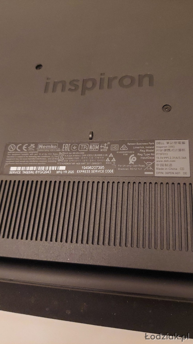 Sprzedam zadbany laptop Dell Inspiron 3593. Zakupiony w listopadzie 2020 roku. Laptop jest w pełni sprawny, świeżo przygotowany do sprzedaży – został zainstalowany czysty system Windows 11 i przywrócony do pierwszej konfiguracji, dzięki czemu nowy właściciel uruchomi go jak nowy komputer.