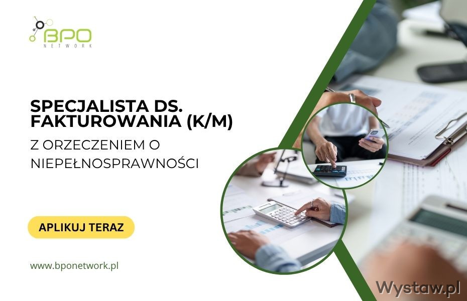 Specjalista ds. fakturowania (K/M) z orzeczeniem o niepełnosprawności