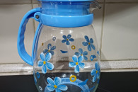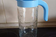 Dzbanek szklany z niebieską nakrętką z rączką lokalizacja: Sieradz |